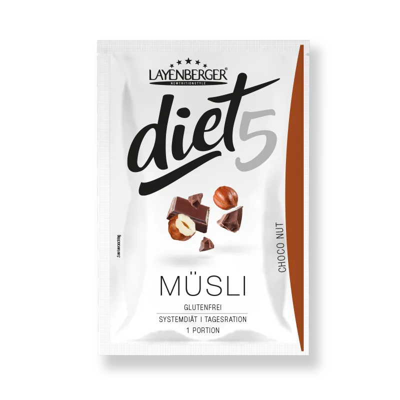 Muesli has always been a staple in the Layenberger product range and is, of course, an essential part of the diet5 line. The three varieties – Apple-Cinnamon, Choco-Nut, and Mixed Berries – cover a wide spectrum of flavors, from chocolatey and fruity to nutty. In addition to our mostly liquid diet products, we offer you a daily portion with plenty of crunch. Our diet5 muesli is perfect for a delicious start to your day, but ultimately, it's entirely up to you and your eating habits! Diet5 sets no limits, and you are free to choose.