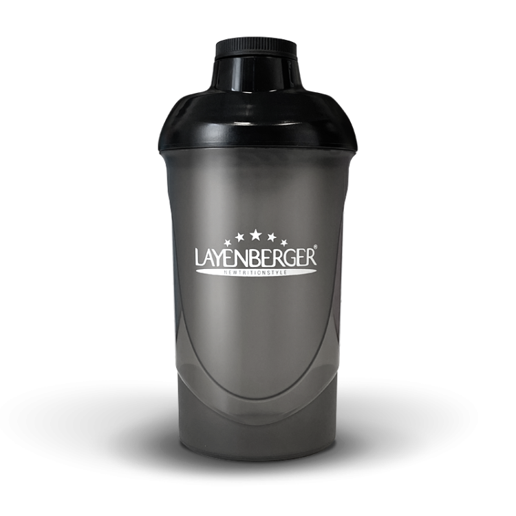 This dark shaker features an embossed measurement scale in 50 ml increments and a screw cap with a resealable drinking opening. It includes a removable strainer that ensures optimal mixing of shake powder and liquid with a good shake.