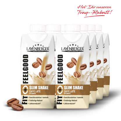 Layenberger Fit+Feelgood Slim Shake Caffé-Latte comes in a handy 330ml Tetra Pak, making it a ready-to-drink meal – gluten-free and low in lactose . Perfect for on the go – whether at the office , at work , at university , or anywhere else! Simply shake well, open, and enjoy.