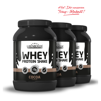 The Layenberger Whey Protein Shake Cocoa contains 6.1g of BCAAs per serving (prepared with milk) or 4g (prepared with water).