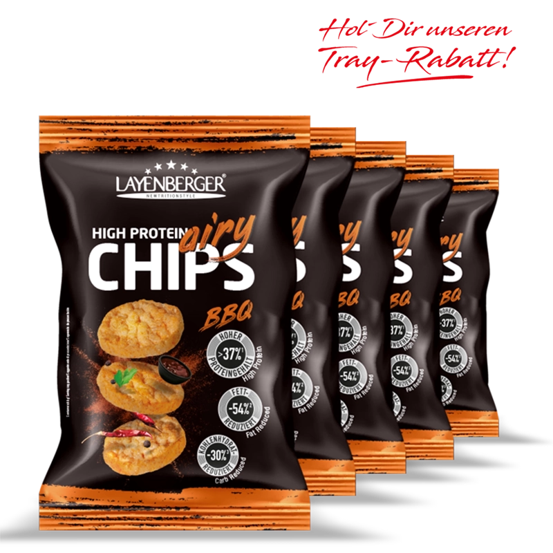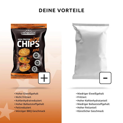 Erlebe die Layenberger High Protein Airy Chips: super knuspriger Crunch, ein würziger BBQ-Geschmack und dabei luftig wie nie.