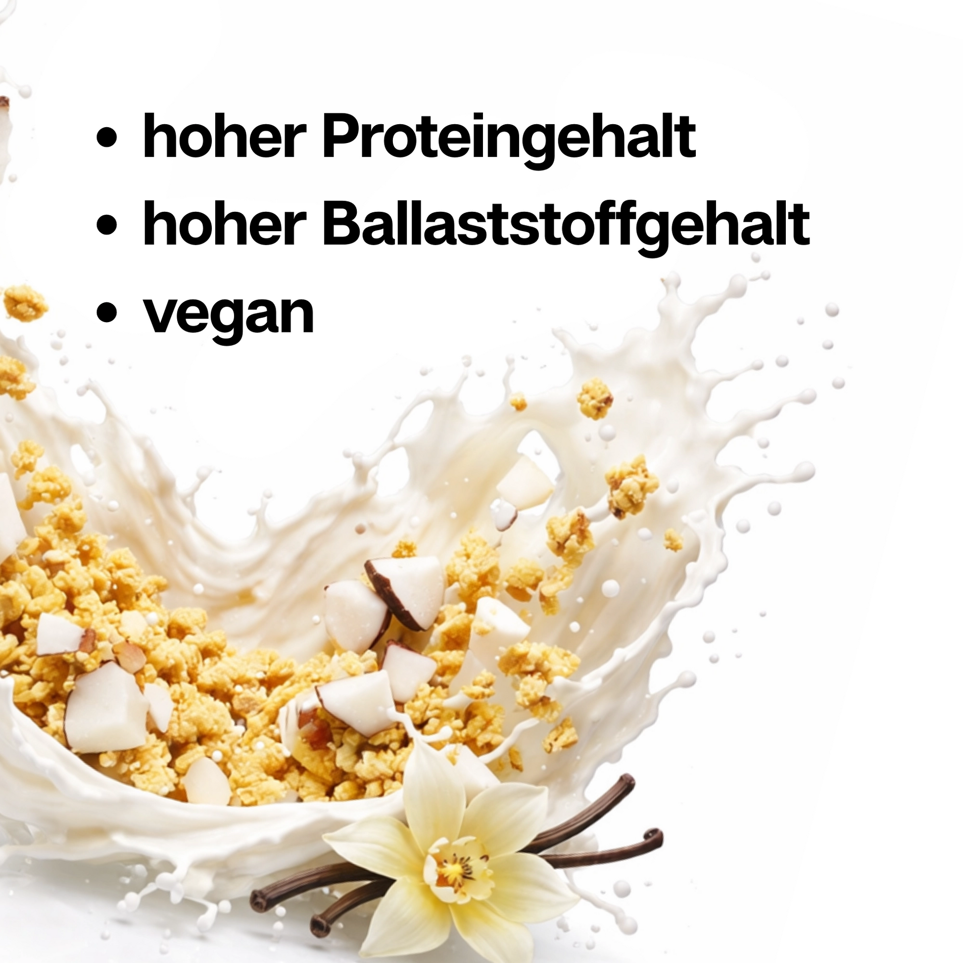 Die perfekte Kombination aus zarten Kokoschips, knusprigen Proteincrispies und einer feinen Vanillenote macht dieses Müsli zu einem besonderen Geschmackserlebnis. Ob mit Milch, Joghurt oder pur – jeder Löffel verspricht exotischen Genuss und langanhaltenden Crunch.