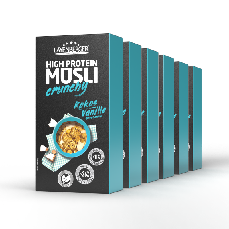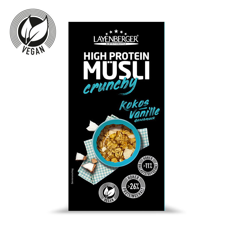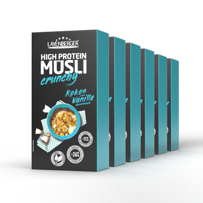 Starte kraftvoll in den Tag mit unserem High Protein Crunchy Müsli Kokos-Vanille. Mit 26% hochwertigem Protein ist es die ideale Wahl für Sportler, Fitness-Fans und alle, die eine bewusste Ernährung schätzen. Dank des hohen Ballaststoffgehalts hält dich unser Müsli lange satt und unterstützt eine gesunde Verdauung.