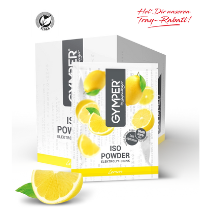 Lade Dich auf mit dem GYMPER Iso Powder Zitrone! Ganz egal, ob Dein Akku im grünen Bereich arbeitet, gelb blinkt oder rot leuchtet. Einen 40g-Portionsbeutel kurz aufrühren mit 500ml Wasser, trinken und staunen: Elektrolyte schmecken plötzlich fruchtig. Kein Wunder, denn unsere Iso Powder werden mit natürlichem Fruchtpulver hergestellt.