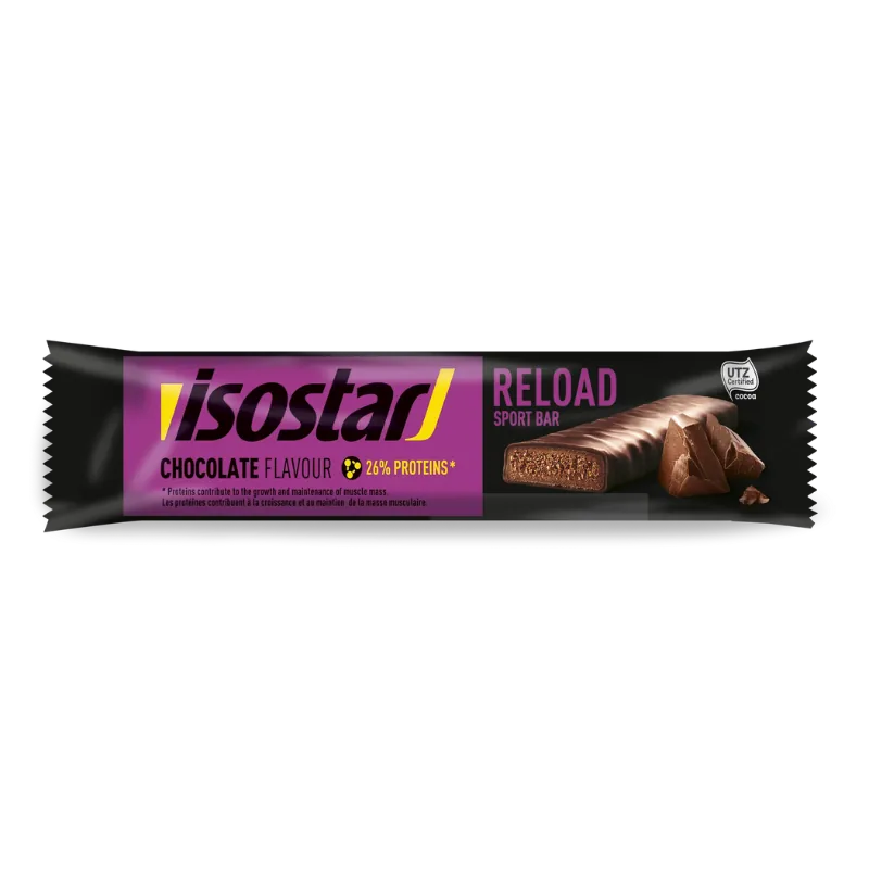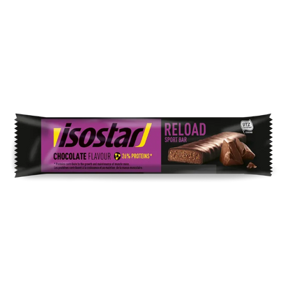 Die Isostar Reload Bar wurde speziell entwickelt, um die Erholungsphase von Sportlern und insbesondere Ausdauersportlern zu optimieren. Sein garantierter Proteingehalt (25%) trägt zur Erhaltung und Steigerung der Muskelmasse bei. Der Kohlenhydratgehalt fördert das Wiederaufladen der Energie mit Wiederherstellung der Glykogenreserven des Körpers und sein Gehalt an Vitaminen und Mineralstoffen gleicht Verluste aus, die durch Transpiration während des Trainings entstehen: - Die Vitamine B1, PP und B6 tragen zur Umwandlung von Nahrung in Energie bei - Vitamine C, E und B2 trägt zum antioxidativen Schutz der Zellbestandteile bei - Vitamin C kann im Falle eines Mangels zur Minderung der Müdigkeit beitragen.- Calcium und Magnesium tragen zu einer guten Muskelfunktion bei - Vitamin B6 trägt zum Stoffwechsel von Proteinen und Glykogen bei. Sein Single-Pack, Go-Anywhere-Format und Schokoladengeschmack machen es zum idealen Begleiter für eine angenehme und effektive Erholung.