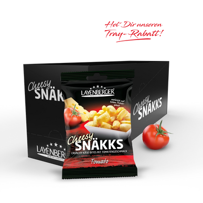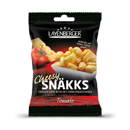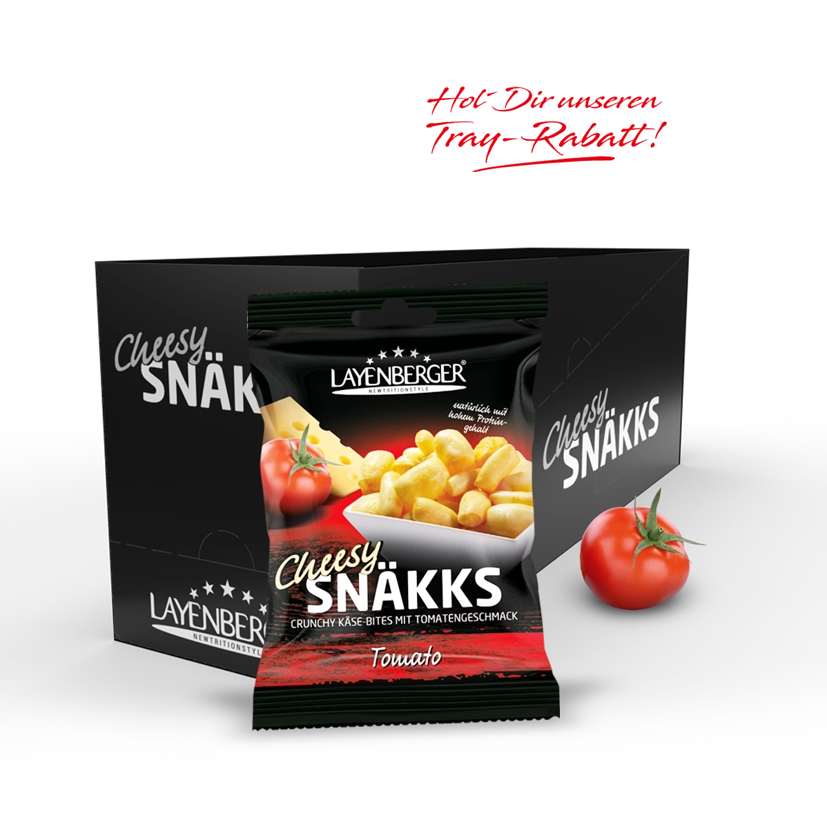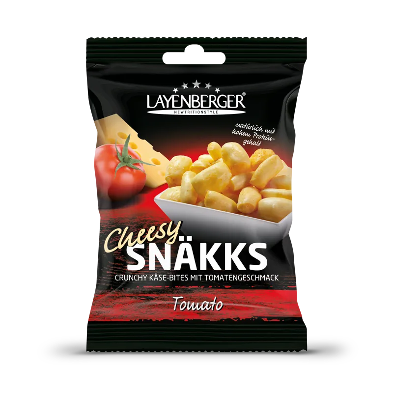 Die Layenberger Cheesy Snäkks Tomato sind ein weiteres Beispiel für Modern Snacking nach Layenberger-Art. Zeitgemäßer und ernährungsbewusster Genuss für ein sportlich aktives Leben, für Menschen, die funktionale Ernährung als Basis für ihren Lifestyle definieren. Die Cheesys werden allen diesen Ansprüchen gerecht. Natürlich auch in den drei anderen Geschmacksrichtungen Original, Bacon und Sourcream&Onion!