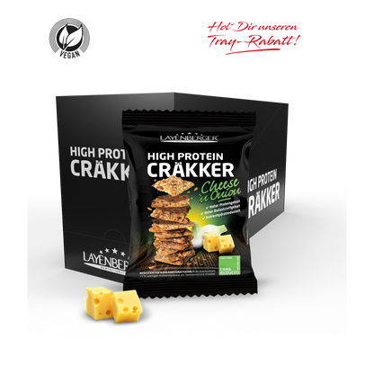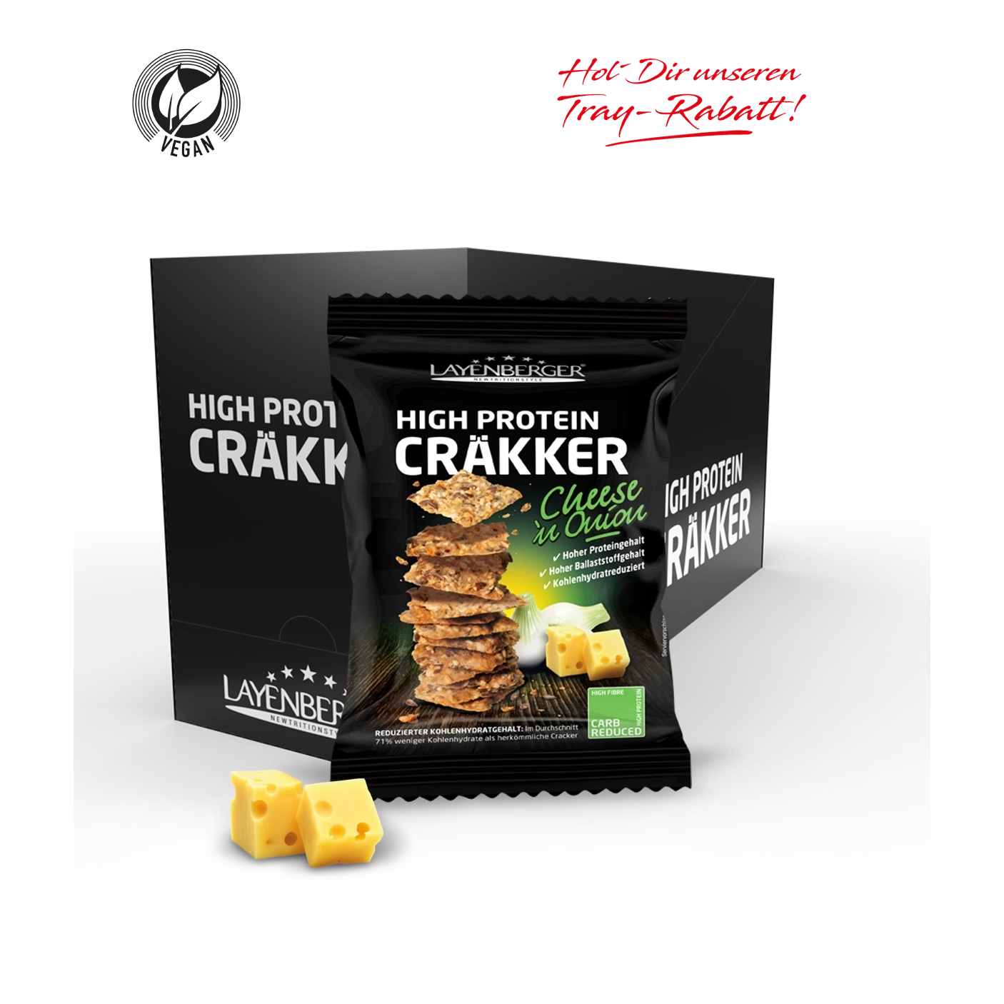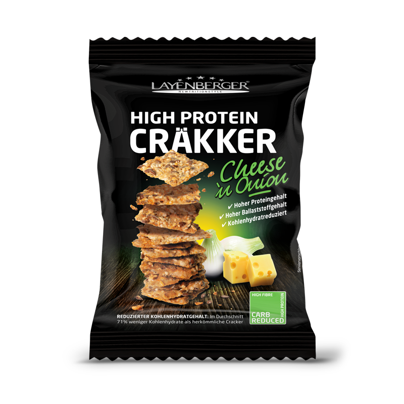Man nehme ein Rezept aus dem Jahr 1810, erfülle es mit neuem Leben, richtig Pep sowie den wertvollen Layenberger-Attributen – und schon sind wir wieder einmal mitten im Modern-Snacking-Genuss. Layenberger High Protein Cräkker Chees‘n Onion – super lecker im Geschmack, dazu prallvoll mit Protein (39g pro 100g) und mit einem stark reduzierten Kohlenhydratgehalt (71% weniger Kohlenhydrate als herkömmliche Cracker).