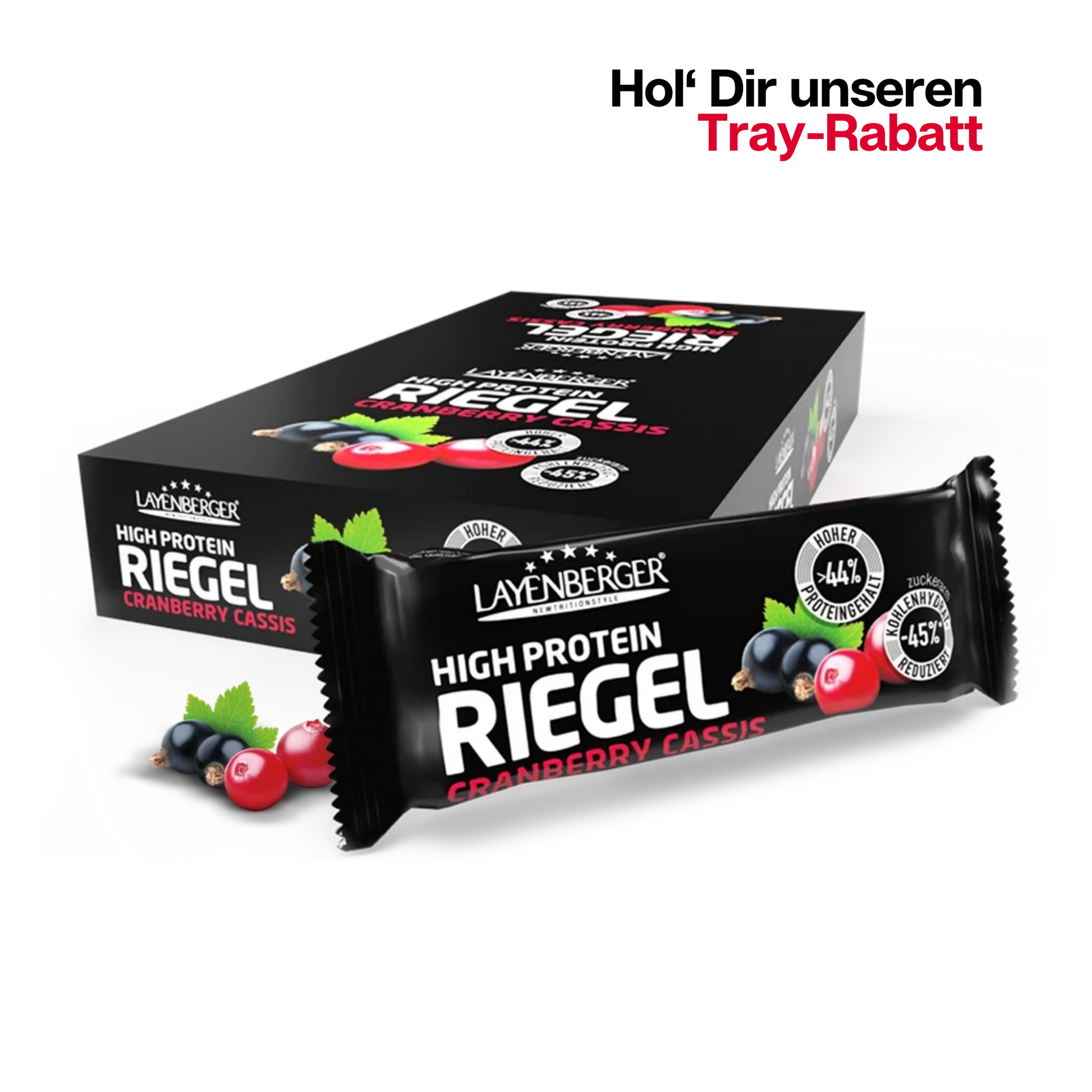 Der Layenberger High Protein Riegel Cranberry-Cassis ist Liebe auf den ersten Biss. Die feine Mischung aus Cranberries und Heidelbeeren ist ein luftiger und praliniger Genuss für deine Geschmacksknospen.