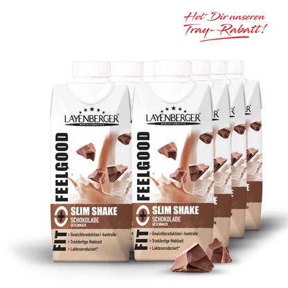Mit den Ready-to-Drink Slim Shakes wird eine bewusste Ernährung kinderleicht. Ob als Ersatz für eine Hauptmahlzeit oder zwei – der Fit+Feelgood Fixfertig-Drink bietet maximale Flexibilität für deinen Alltag