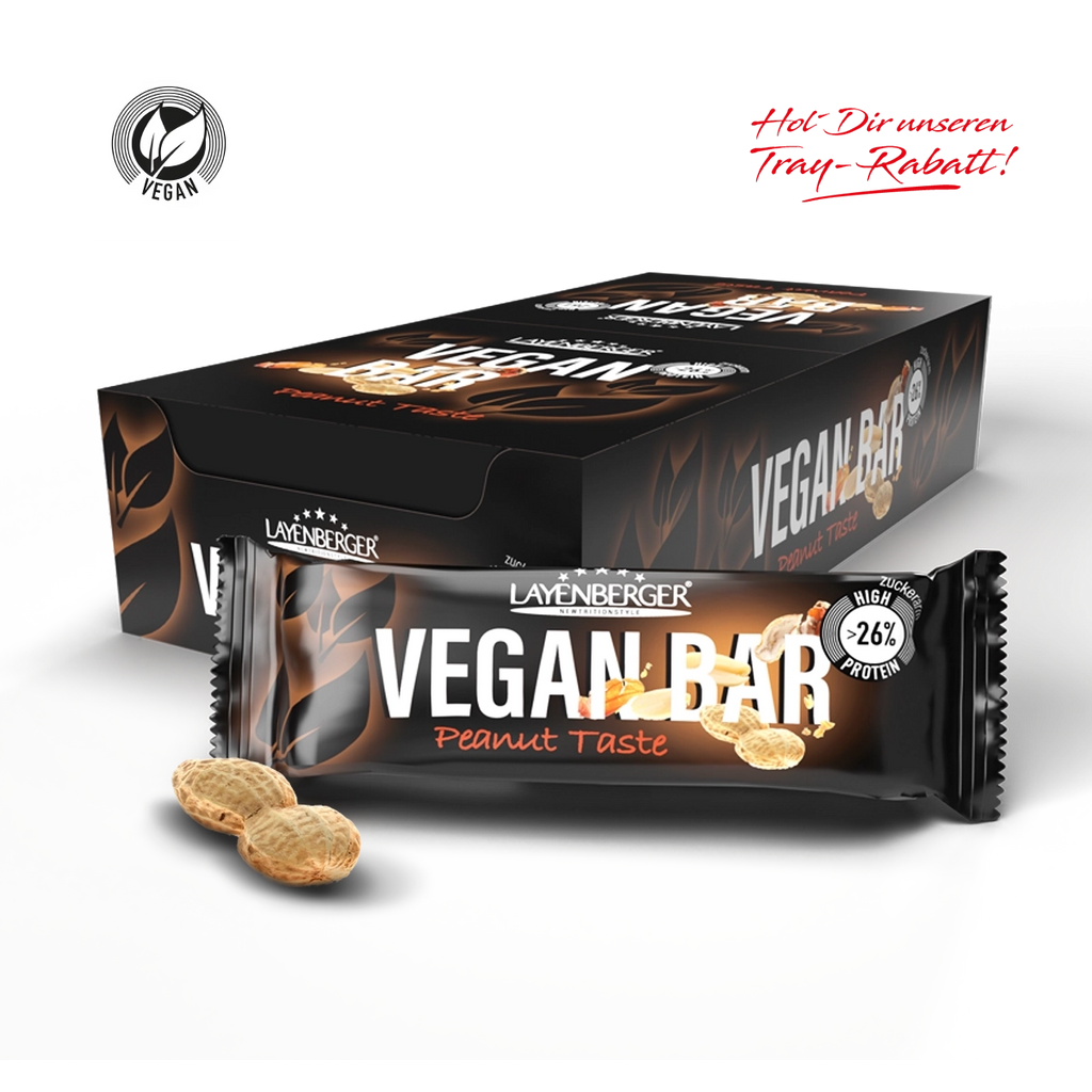 Proteinriegel sind in aller Munde – jedermann*frau nutzt sie als ausgewogene Snackalternative oder zum Erreichen des täglichen Proteinbedarfs. Mit unseren neuen Layenberger Vegan Bars möchten wir Dir nun auch eine rein pflanzliche Alternative bieten, sodass du frei nach Deinen Ernährungsgewohnheiten und Bedürfnissen entscheiden kannst. Dabei liefern unsere Proteinbomben im 35g-Format traumhafte Nährwerte: 23% Protein, 16% Ballaststoffe und gleichzeitig zuckerarm. Durch die Kombination verschiedener pflanzlicher Eiweißquellen wie Weizen-, Soja-, Reis- und Erbseneiweiß liefern Dir die Layenberger Vegan Bars zusätzlich die volle Aminosäurevielfalt. Also ganz egal, welche Ernährungsform Du gerade bevorzugst, ob vegan, vegetarisch oder omnivor – Hole Dir Deine Ladung Protein – 100% plant-based¹!
